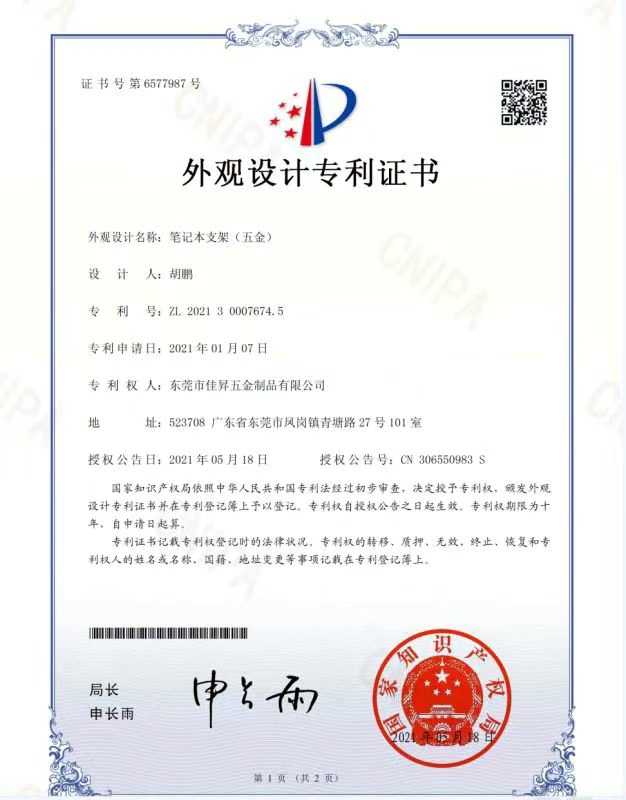 ◆ 專利權(quán): 擁有8項(xiàng)由國(guó)家知識(shí)產(chǎn)權(quán)局頒發(fā)的外觀設(shè)計(jì)專利證書(shū)
